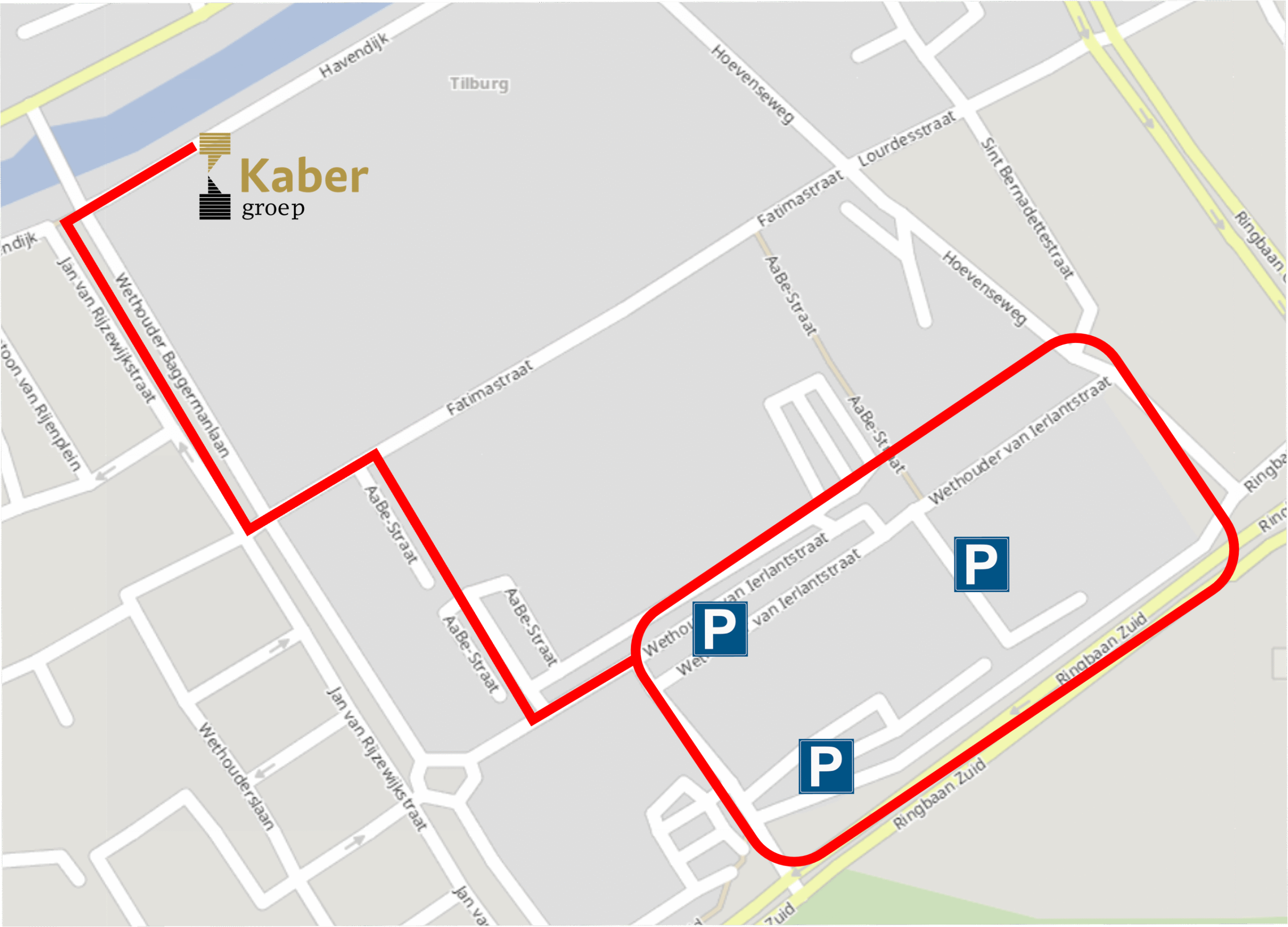 Vanaf de Wethouder van Ierlantstraat is het ongeveer 5 minuten lopen naar onze locatie. Loop rechtsaf de AaBe-straat in (tussen de winkels). Aan het einde van de straat ga je linksaf de Fatimastraat in. Bij de Wethouder Baggermanlaan sla je rechtsaf en loop je richting de ophaalbrug. Sla vóór het water rechtsaf de Havendijk in. Kaber bevindt zich op Havendijk 30.